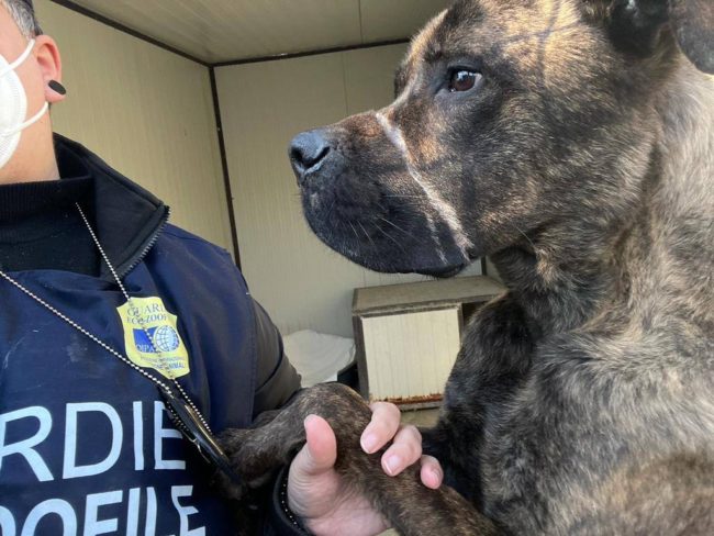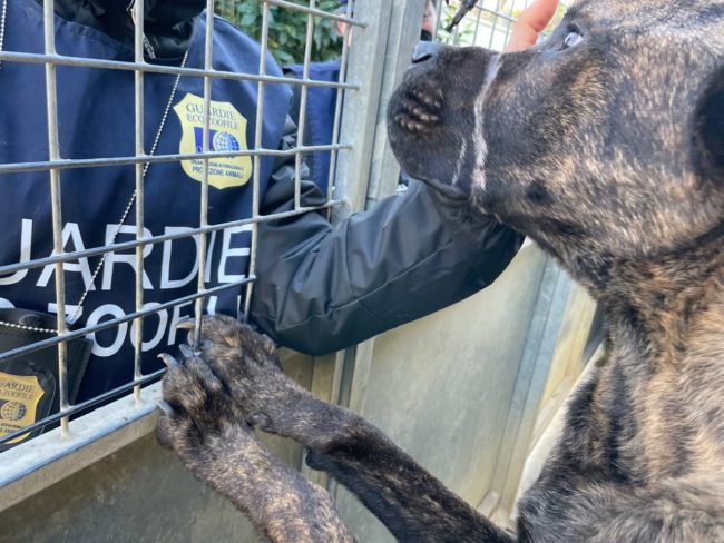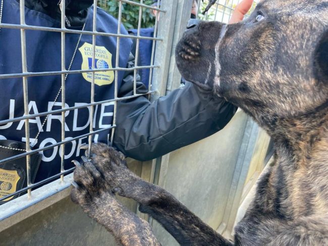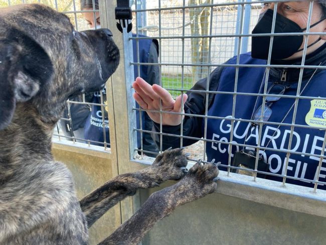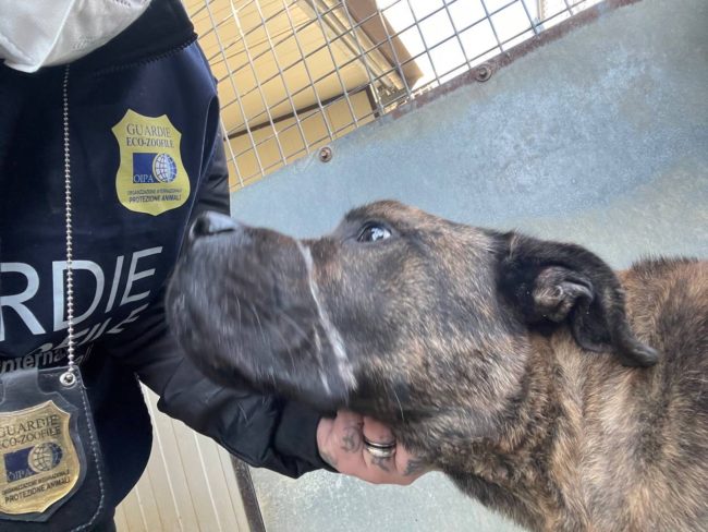 «Il cane – prosegue – era stato adottato da cucciolo, durante il primo lockdown, e poi ridotto in quelle condizioni. Presentava inoltre una cicatrice circolare attorno al muso che ci ha fatto subito pensare a un legaccio che gli impedisse di aprire la bocca. La proprietaria – aggiunge – ha giustificato l’evidente magrezza del cane attribuendola a inappetenza, ma il cagnolone in nostra presenza è risultato molto vorace».