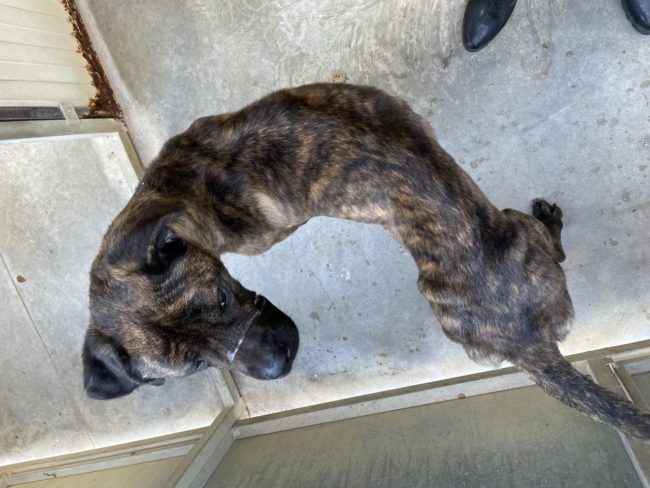 «’Muso’, così lo abbiamo chiamato – racconta Luana Bedetti, coordinatrice regionale delle guardie zoofile Oipa delle Marche – è un cane molossoide derivato Corso. Alla sua età dovrebbe pesare tra i 40 e i 45 chili, invece al nostro arrivo ne pesava appena 28».