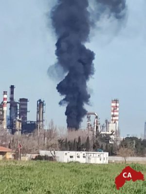 Incendio alla raffineria Api, nella tarda mattinata di oggi.