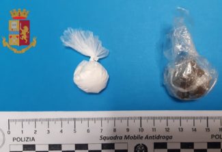 La perquisizione dei poliziotti ha permesso di trovare e sequestrare una decina di grammi di sostanza, tra cocaina e hashish.