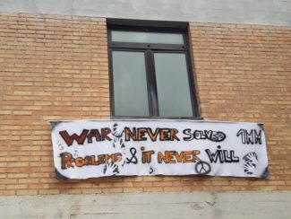 Striscioni di pace esposti fuori dalle finestre di ogni aula. L’Iis Marconi Pieralisi si veste d’arcobaleno e dice no alla guerra. “Impegnati per la pace” è lo slogan, volutamente senza accento tonico per testimoniare una coscienza in atto e un imperativo morale, scritto su uno sfondo color arcobaleno che campeggia da sabato mattina sopra l’ingresso principale dell’edificio dell’Iis Marconi Pieralisi di Jesi.