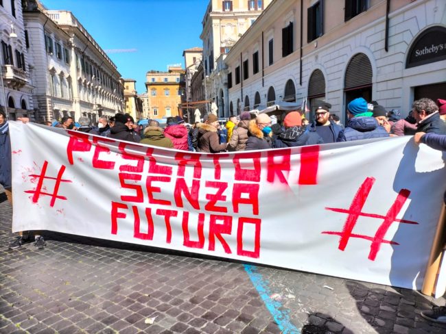 Raggiunta la Capitale in pullman, hanno manifestato in piazza Santi Apostoli insieme ai colleghi di tutta Italia in attesa dell’incontro con il sottosegretario alla Pesca, Francesco Battistoni, e il direttore generale, Riccardo Rigillo.