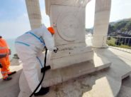 ANCONA – Operatori di Anconambiente al lavoro per togliere scritte e vandalismi dal simbolo del Passetto, più volte imbrattato da incivili. Le parole del sindaco Mancinelli: «Cancellare il brutto costa, tempo e denaro. Quelli dei cittadini, perché si tratta di soldi pubblici»