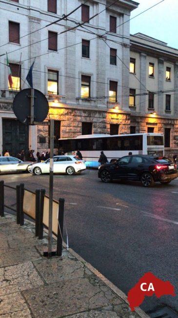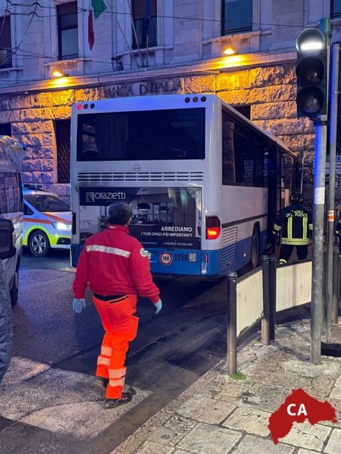 Autobus finisce contro la facciata della Banca d’Italia: tre feriti, tra cui il conducente del mezzo pesante e due passeggeri. Non sono gravi.