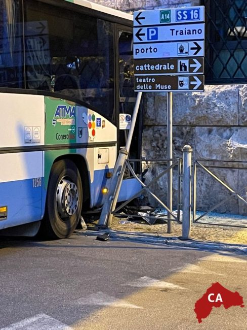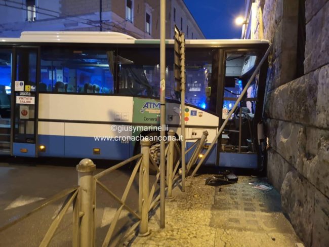 Stando a quanto finora emerso, l’autobus – del circuito Conerobus – non andava veloce anche perché era ripartito dopo essersi fermato pochi metri prima, in piazza Kennedy.