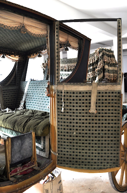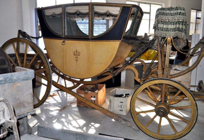 «Quella che abbiamo in magazzino è un modello di gala, decorata e in parte dorata, un magnifico esemplare di Berlina della prima metà del XIX secolo – così la descrive Maria Vittoria Carloni, impiegata alla Direzione Cultura municipale ed esperta di carrozze – Un tipo di veicolo solitamente riservato alle case regnanti o alle grandi casate nobiliari, a quattro ruote con cassa in legno sospesa a cinghie di cuoio, con vetri e copertura. La forma specifica del telaio e le ruote con raggi in legno cerchiati in ferro attestano proprio la fabbricazione tipica del primo Ottocento, prima dell’avvento della scocca portante e dell’introduzione della gomma. Questa carrozza è un preziosissimo oggetto in buono stato di conservazione da studiare e valorizzare opportunamente». Uno stadio di conservazione buono, ma non ottimale. La carrozza necessita di un’accurata revisionate. Di un esperto restauratore e maestranze specializzate per riportala pienamente al suo antico splendore. Vanno eliminate le fessurature del legno, sostituite le cinghie e le altre componenti in cuoio, così come buona parte della tappezzeria interna. C’è speranza che questo restauro conservativo venga effettuato? Carloni: «Sì, l’assessorato alla Cultura sta pensando di reperire buona parte dei fondi necessari presentando un progetto attraverso le modalità dell’Art Bonus», un istituto introdotto per favorire il mecenatismo artistico-culturale. Si spera che questo intento dell’assessorato si concretizzi, in modo che la carrozza possa essere esposta al pubblico in un locale comunale. Potrebbe essere adatto uno degli spazi della Mole Vanvitelliana.