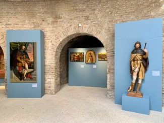 A Loreto, dove non a caso inizia questo percorso espositivo, il santuario mariano venne riconosciuto nel 1520 come centro di pellegrinaggio universale al pari di Gerusalemme, Roma e Santiago di Compostela, richiamando così fedeli da tutto il mondo. La mostra vuole rendere omaggio a questo particolare legame. La maggior parte di opere proviene dalle collezioni civiche marchigiane, dove non mancano capolavori di autori come Antonio da Fabriano, Carlo Crivelli, Pietro Alamanno, Guercino, Francesco Guerrieri, Pietro Liberi e Ferdinand Voet che tra il XV e il XVII secolo hanno testimoniato questo fenomeno di culto, dedicando le rappresentazioni soprattutto a san Giacomo Maggiore e san Rocco, patroni dei pellegrini, e illustrando l’abbigliamento tipico dei devoti sia prima che dopo il periodo della Controriforma. Nel percorso sono esposti anche alcuni importanti stendardi processionali conservati nelle Marche, a testimonianza di oggetti che erano fondamentali per il culto e che rappresentano anche un genere pittorico di grande impegno, la cui realizzazione era resa nota già dal celebre trattato di Cennino Cennini nel XIV secolo.