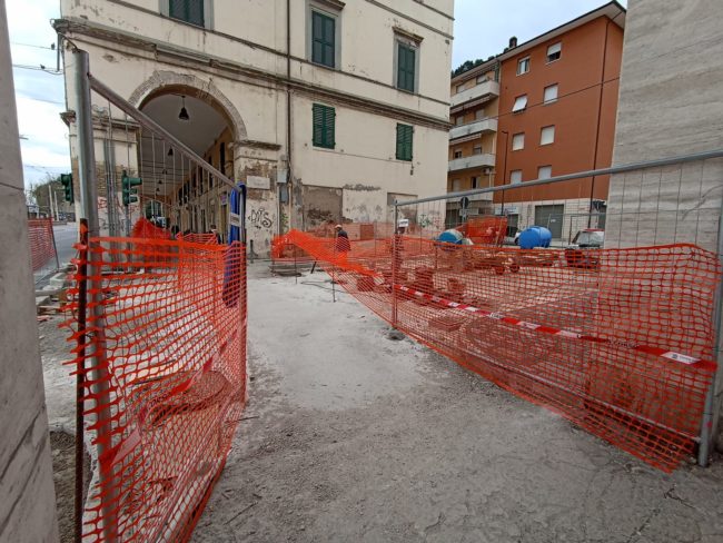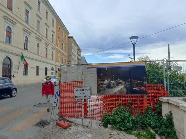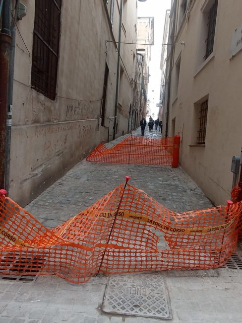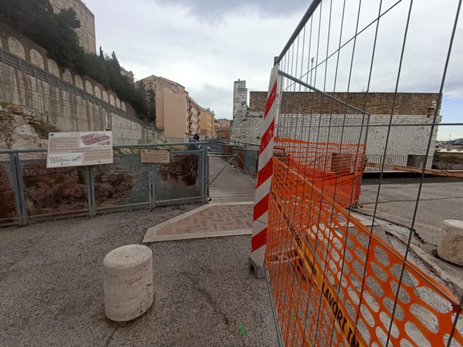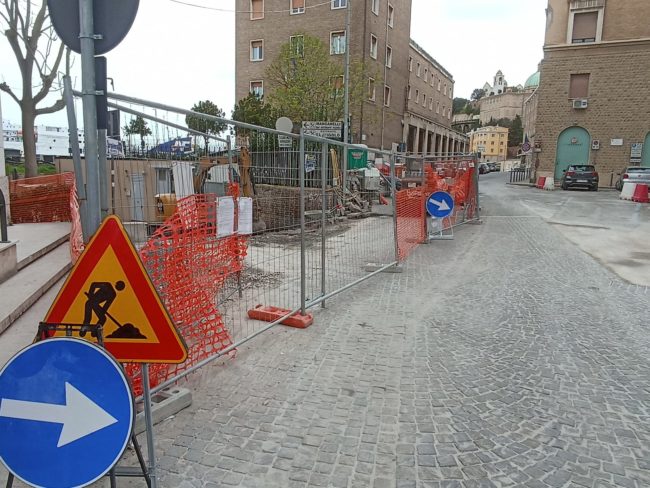 Ma se si va oltre il colpo d’occhio iniziale, si scopre che per raggiungere quel terrazzo così suggestivo, si deve fare una mezza corsa ad ostacoli tra le transenne, alcune più recenti, altre diventate ormai parti integranti delle strutture che interdicono, tanto sono longeve. Rispetto al 2021, perlomeno via della Loggia non si presenterà come un cantiere a cielo aperto – solo una traversa che la collega a piazza del Papa è ancora “incerottata”, oltre alla parte interdetta di fronte alla portella Santa Maria -, ma in tutta la sua bellezza dal sapore antico. Per il resto, sia procedendo verso l’ingresso nord della città che addentrandosi nel centro storico, si inciamperà in qualche cartello “lavori in corso”. Dagli Archi alla statua di Traiano, passando per la Mole e Porta Pia, è tutto un cantiere. Cosa certamente positiva perché, quando finalmente saranno terminati i lavori – inciampati in una lunga serie di stop&go –, l’ingresso nord della città ne uscirà riqualificato.