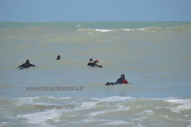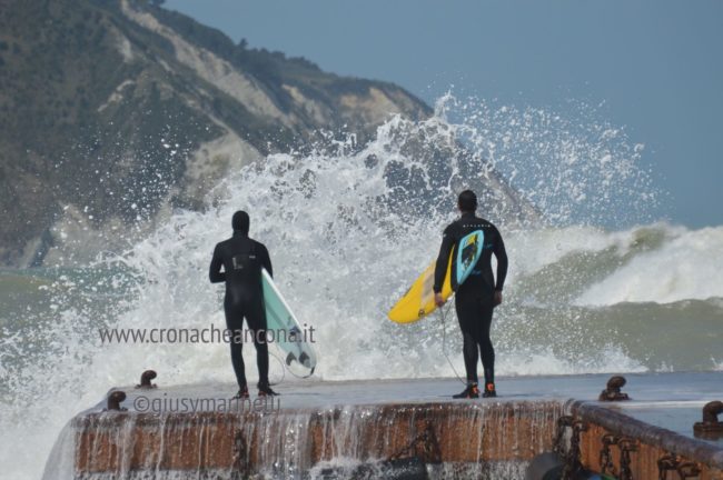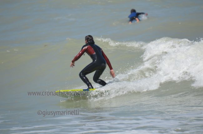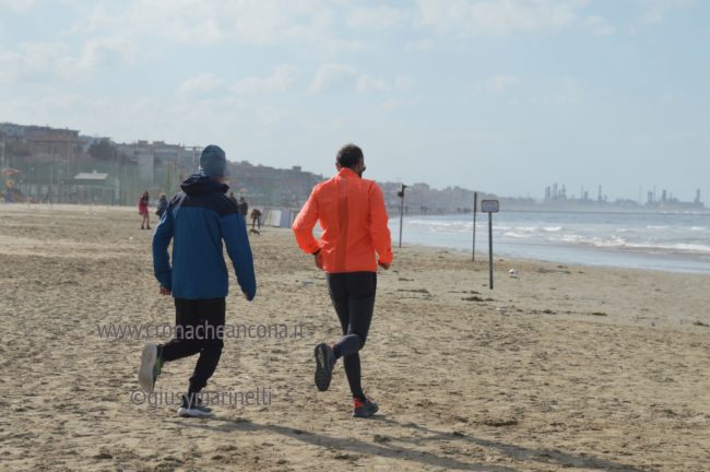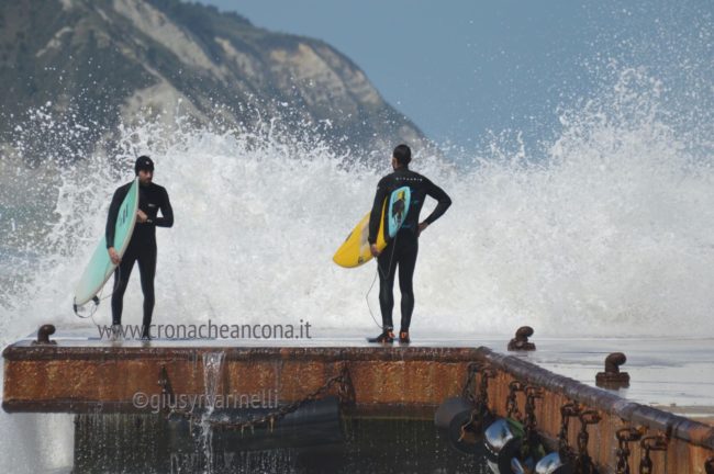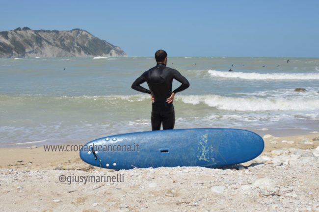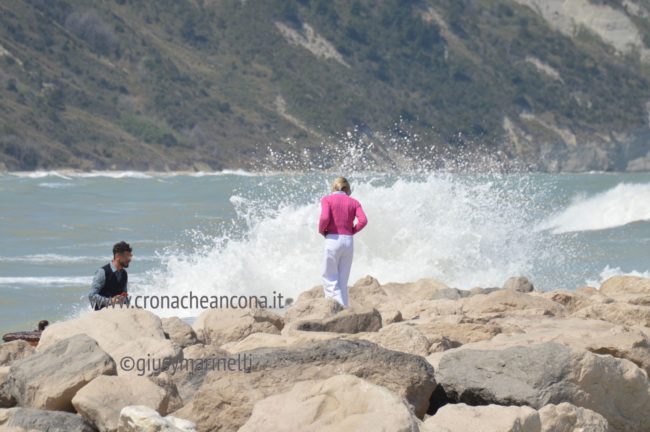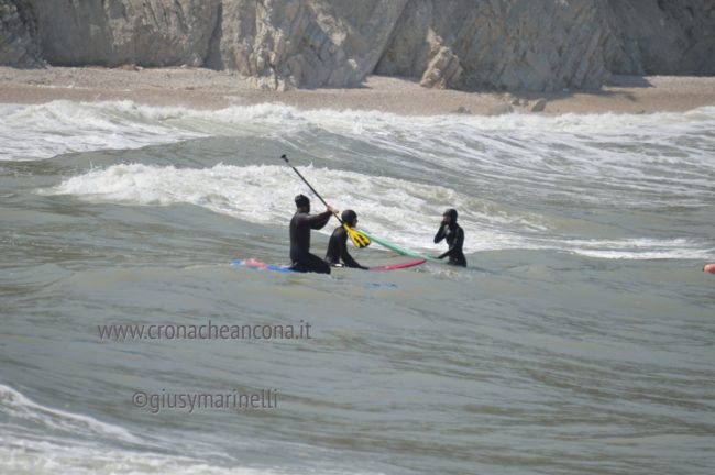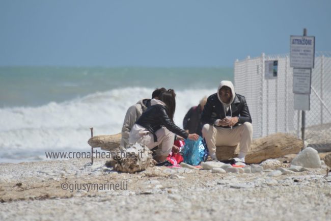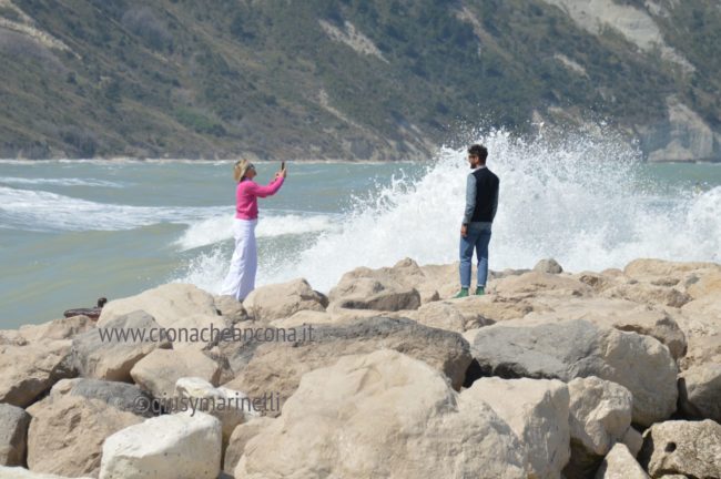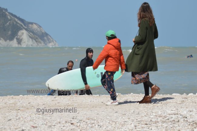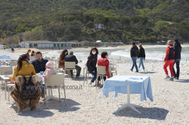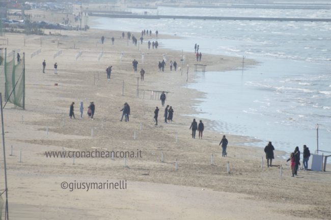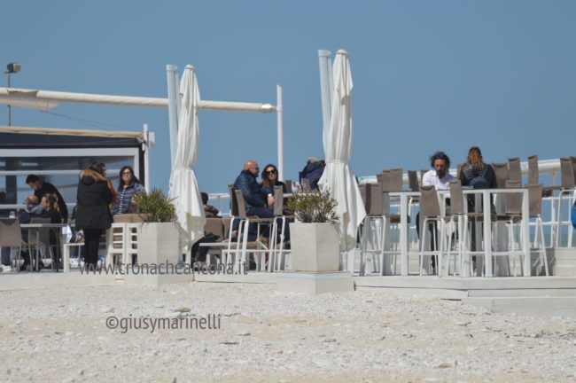 ANCONA - In molti oggi hanno scelto come meta la bellezza suggestiva della baia per passeggiare, fare jogging, cavalcare le onde sulla tavola da surf e sedersi a tavola con amici e familiari - FOTO