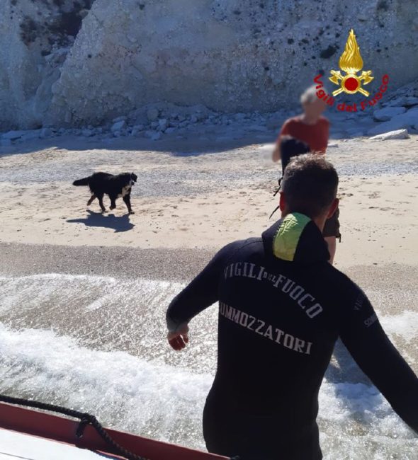 Attivati i soccorsi, sul posto sono prontamente intervenute le squadre della Sezione Navale e i Sommozzatori dei Vigili del fuoco che hanno imbracato, a bordo del gommone, l’uomo ed il suo cane per condurli alla Spiaggia Urbani di Sirolo dove poi sono scesi per poter riprendere la via di casa.