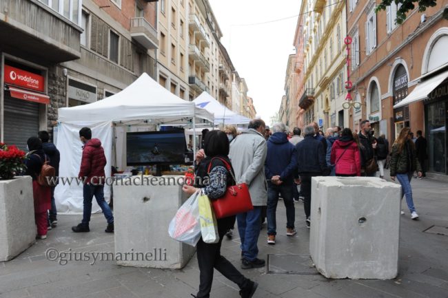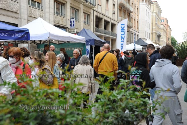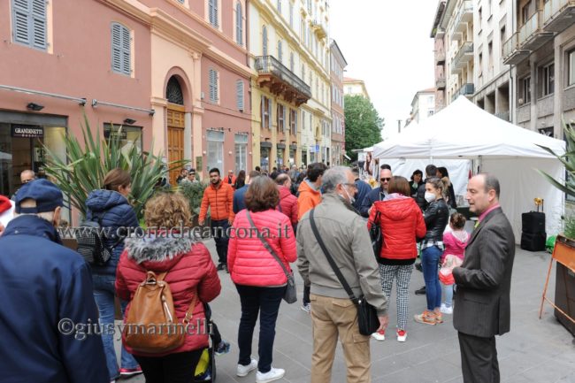Molti visitatori hanno deciso, infatti, di posteggiare il proprio mezzo nei parcheggi periferici della città preferendo salire sulle navette, attivate con frequenza costante dal Comune per agevolare l’accesso al centro fino al 4 maggio. La comunità anconetana è tornata a celebrare il santo patrono con la tradizionale formula delle manifestazioni pubbliche, dopo lo stop di due anni imposto dall’emergenza sanitaria. «Dopo i tempi difficili della pandemia, operatori e pubblico attendono questa occasione di ritorno alla normalità» aveva sottolineato la ‘Blu Nautilus’, che organizza l’evento da 30 anni, nel presentare le novità della nuova edizione. Gli espositori quest’anno sono 413, divisi per zone geografiche e merceologiche. Gli ambulanti con 317 bancarelle sono dislocati soprattutto in Viale della Vittoria, lungo tre corsie, e nel primo tratto di Corso Garibaldi. Il settore specializzato ‘Sapori Tipici’, giunto alla 15esima edizione, è stato allestito in Viale della Vittoria, nel tratto compreso tra Via Rismondo e Via Bianchi con 27 espositori. Oltre al gruppo di espositori marchigiani, sono rappresentate altre 12 regioni: Abruzzi, Alto Adige, Calabria, Lazio, Piemonte, Puglie, Romagna, Sicilia, Sardegna, Umbria, Veneto oltre al Belgio.