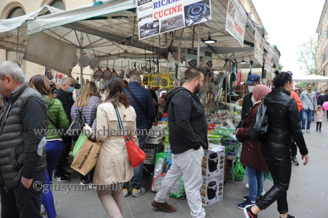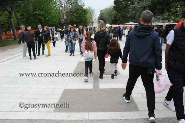 La Campionaria viene riproposta, nel secondo tratto di Corso Garibaldi, tra Via Castelfidardo e Piazza Roma e ospita 24 stand promozionali delle aziende. Il Mercatino degli Artigiani vanta invece 39 espositori in Corso Garibaldi, da Piazza Roma verso Piazza della Repubblica. «I banchetti degli artigiani, multicolori, multietnici e multicreativi, sono un richiamo per il pubblico conferendo un tocco di originalità al percorso in Fiera. – secondo la società organizzatrice – Completano il panorama degli espositori i 16 punti ristoro che animano Piazza Pertini, per l’iniziativa ‘San Ciriaco Street Food’, La Festa del Cibo in Piazza». Proprio i banchi della gastronomia in mattinata, all’approssimarsi dell’ora di pranzo, hanno calamitato l’interesse di gruppi e intere famiglie. Nonostante siano cambiate le regole sull’uso dei Dpi anti-Covid, molti visitatori oggi, in via precauzionale indossavano comunque la mascherina sul volto nelle zone dove si sono manifestati i maggiori assembramenti di persone. La fiera quest’anno dedica uno spazio di centralità all’area di Piazza Pertini con iniziative originali. Non solo food ma anche musica con esibizioni nello stile dei musicisti di strada dalle ore 19 alle 22.30 fino a mercoledì prossimo. Dopo il concerto inaugurale di ieri, stasera si esibirà il duo Dust, con musica italiana, domani ‘La Regina’, martedì 3 maggio il trio Moonshadow con musiche internazionali e country. Gran finale, il 4 maggio, con il trio Clara People, con un repertorio di british folk e sound italiano. Nella stessa giornata al porto riaprirà alle visite anche la Lanterna Rossa e c’è grande attesa per il ritorno della tombola della Croce Gialla. Il tutto sotto l’occhio vigili delle forze dell’ordine, Polizia e Carabinieri che, a partire da oggi garantiranno per tutti un tranquillo svolgimento della manifestazione.