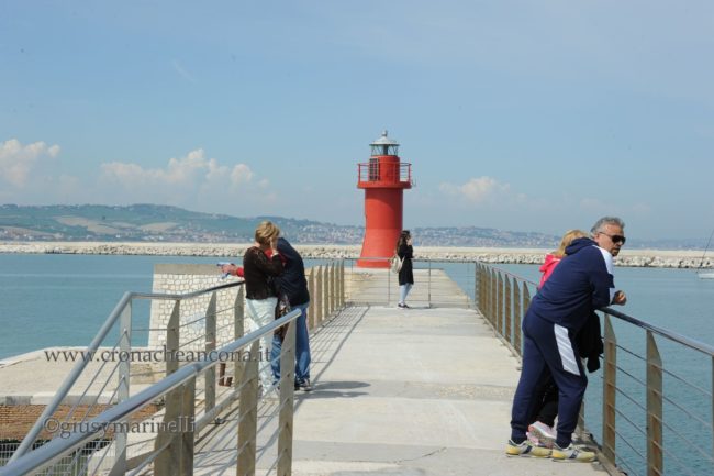 E’ tornata a essere (quasi) fruibile questa mattina la Lanterna Rossa, uno dei simboli più amati dagli anconetani. L’apertura di una parte di molo è avvenuta dopo un’interdizione durata un anno e mezzo. Il passaggio era infatti chiuso da novembre 2020, quando l’Italia intera era stata divisa a colori a causa della pandemia. Per motivi di sicurezza non si può andare a toccare con mano la Lanterna. A separarla dai cittadini una distanza di circa 40 metri e una balaustra. Lungo il molo, sempre per motivi di sicurezza, sono stati installati dei paletti. Collocata anche una panchina per poter godere del sole, del mare e di un panorama mozzafiato, meta di romantici e ammiratori del murale di Monica Vitti.