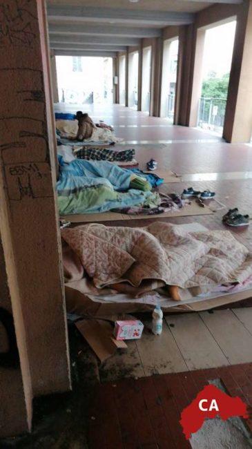 Decine di senzatetto sotto il porticato: