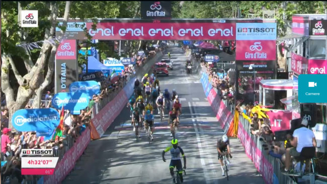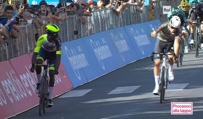L’onda rosa del Giro d’Italia ha travolto Jesi. Ma anche Filottrano, pedalando nel ricordo del mai dimenticato Michele Scarponi. E’ stato un giorno di festa per le città e i paesi della provincia di Ancona interessati dal passaggio della carovana rosa. La decima tappa del Giro, partita a Pescara, si è conclusa a Jesi dopo 196 chilometri e un dislivello di 1.760 metri. A tagliare il traguardo posto lungo il viale della Vittoria, in prossimità dell’incrocio con via Montello/via Radiciotti, è stato l’eritreo Biniam Girmay dopo quattro ore, 32 minuti e 7 secondi di corsa. E’ il primo atleta dell’Africa nera ad aver vinto una rappa del Giro. Battuto in volata Van der Poel. In maglia rosa Juan Pedro Lopez Perez.