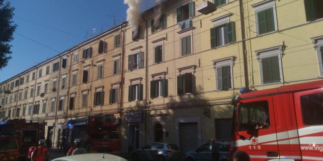 Inferno di fuoco all’ultimo piano di un appartamento di un palazzo di corso Carlo Alberto.