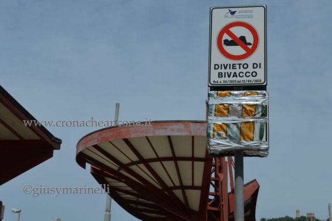 Nelle medesime aree, è, altresì, vietato il deposito o l’accumulo temporaneo di masserizie, suppellettili ed ogni altro oggetto non previamente legittimato nelle forme di legge da parte di questa Autorità di Sistema, pena l’immediata rimozione con conseguente smaltimento d’ufficio – da parte di questo ente – con esecuzione in danno ai soggetti responsabili». Inoltre, le associazioni di volontariato, di assistenza sociale o di volontariato potranno formalizzare segnalazioni all’Autorità Portuale «che valuterà il coinvolgimento degli organi e dei servizi sociali all’uopo preposti per assicurare la dovuta assistenza delle persone senza fìssa dimora e/o in difficoltà presso le strutture pubbliche presenti sul territorio». Per la Rete Ferroviaria Italiana è obbligatorio, nel tratto tra la stazione ferroviaria centrale e l’ex stazione marittima, «intraprendere ogni iniziativa di competenza in termini di vigilanza, buona custodia, pulizia e mantenimento delle giuste condizioni di decoro ciò onde prevenire e/o contenere ogni possibile occasione di abusiva occupazione o bivacco negli spazi medesimi».