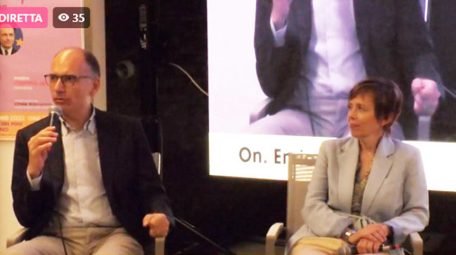 Il segretario del Partito Democratico, in città per tirare la volata alla candidata sindaca della Coalizione Democratica verso il traguiardo delle Amministrative del 12 giugno, ha partecipato a un dibattito scorso via veloce in quasi due ore di tempo, moderato dalla giornalista Cristina Morbiducci e trasmesso in diretta streaming e sui canali social di ‘Progetto Fabriano’, senza risparmiarsi e senza lesinare bordate agli avversari politici. «Sono molto contento di esser qui accanto a Daniela alla quale mi lega un vecchia militanza politica che mi ha portato fin da subito a dire come la sua scelta di candidarsi sia una bellissima notizia per Fabriano, per le Marche e l’Italia. Il fatto che lei sarà la prossima sindaca di Fabriano è una straordinaria certezza» ha esordito Letta dimostrandosi molto fiducioso sul risultato elettorale del centrosinistra fabrianese. Sono stati inevitabili i tanti riferimenti alla crisi internazionale («a Putin che non aspetta altro di vedere gli europei, gli italiani divisi») e alle fibrillazioni interne alla maggioranza Draghi («se i partiti politici si mettono ad interagire su una vicenda che ha a che fare con la vita e la morte delle persone pensando ai sondaggi, questa è la fine della buona politica»). Ma il tema su cui Letta si è soffermato di più è quello dell’Europa e dei fondi del Pnrr.