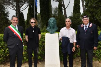 Grazie alla collaborazione instaurata fra Anc, Comune e Accademia, di cui era presente il direttore del settore scultura prof. Pino Mascia, ogni proposta scaturisce da un percorso condiviso, che stimola non solo la creatività artistica dei giovani allievi ma anche la conoscenza delle nostre origini e dei padri fondatori della patria. Come da indicazioni della Sovrintendenza, il busto è in bronzo fuso collocato su pietra bianca ove sono inserite le tre sezioni indicanti il personaggio, l’autore e il donatore. In tale circostanza, l’opera è stata infatti co-finanziata da uno sponsor del territorio, la B.G. Infissi di Giancarlo Borsella, testimoniandone la sensibilità e “l’importanza di coinvolgere il tessuto imprenditoriale in operazioni culturali che rimangono e valorizzano in maniera coerente con la sua identità storico un luogo così prezioso “, come sottolineato dal sindaco Ascani.