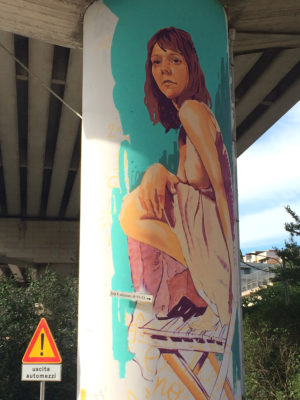 C’è chi le ha già ribattezzate le belle guardiane orientatrici di “Direzione Parco”, il suggestivo sentiero che da Valle Miano s’inoltra nel cuore del Parco del Conero. Due belle ragazze, dipinte su due piloni vicini (tra quelli che sorreggono l’asse stradale nord – sud), impresse e fissate a colpi di vernice, ma che sembrano muoversi e sussurrarti “goditi la natura e battiti perché questo quartiere sia sempre più all’insegna della qualità della vita”. Non c’è che dire, questa volta il graffitista Jonathan “Joe” Arancibia l’ha fatta davvero grossa. Gigantesche, infatti, le due ragazze (una delle due opere deve essere ancora ultimata per una piccola parte) che l’artista di strada 40enne e con le fattezze di eterno ragazzino, di origine cilena ma da anni trapiantatosi ad Ancona, ha materializzato sui due colossi di cemento. Dove il grigio ha lasciato spazio a colori pastello e il cimento pittorico ha creato una specie di visionario, calamitante portale d’ingresso al sentiero che da via Palatucci, nei pressi della pasticceria “La Gola d’oro”, prosegue pianeggiante nel verde incontaminato fino all’altezza del sovrastante ristorante “Villa Romana” di via del Castellano. Un portale di “street art” inaugurato sabato 4 giugno dove i nuovi “wall painting” hanno dato il la ad una lunga festa – dal pomeriggio alla tarda serata – scandita da musica, performance, laboratori creativi e, ovviamente, da una visita guidata a “Direzione Parco”.