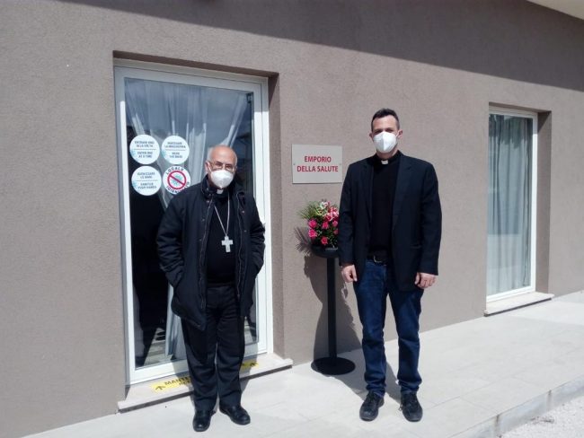 Mons. Francesco Massara all’inaugurazione dell’Emporio della Salute della Caritas di Fabriano in via Fontanelle (foto d’archivio)