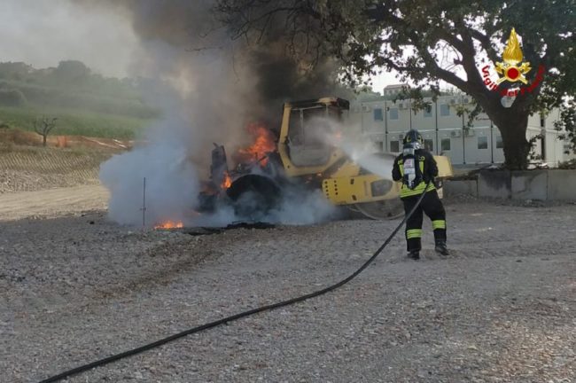 A fuoco è andato un mezzo da cantiere, impiegato per alcuni lavori di costruzione in un’area all’altezza dello svincolo da cui ha inizio la Statale 76.