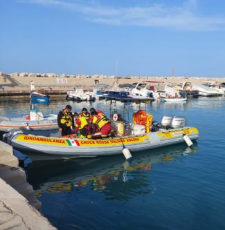 L’idroambulanza della Cri di Ancona con il personale Opsa