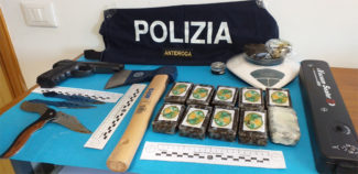 La prima ispezione eseguita ha riguardato un miniappartamento collocato all’interno di un b&b cittadino nel quartiere di Brecce bianche. All’interno della struttura ricettiva in uso a due giovani anconetani, gli investigatori hanno rinvenuto e sottoposto a sequestro 11 panetti di vari formati per un peso di circa 1,5 kg di hashish e 20 grammi marijuana. Oltre alla droga ed al materiale utile per il confezionamento, i due giovani, di 20 e 22 anni, custodivano, celato all’interno di un mobile, un borsone contenente diversi coltelli di cui uno a scatto, un’ascia ed una pistola giocattolo priva del tappo rosso. La seconda perquisizione ha riguardato l’abitazione di origine di uno dei due indagati (ai quali non è stato contestato alcun reato per la vicenda della molotov), al cui interno sono stati rivenuti altri 20 grammi di droga tra hashish e marijuana.