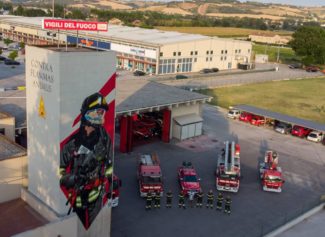 Da oggi il Comando dei vigili del fuoco di Ancona dispone di una particolare, significativa e indelebile testimonianza della attività del Corpo nazionale dei vigili del fuoco. a favore della popolazione, rappresentata magistralmente ai lati del distaccamento di Jesi “B. Mancini” di via Gallodoro. Infatti i Technicalz, ovvero Federico Zenobi e Nicola Canarecci, noti artisti nel mondo dei murales hanno “dato” un pompiere in più al distaccamento cittadino. Non si tratta di un pompiere come gli altri, perché questo, seppur virtuale, ha un significato più profondo. L’opera, realizzata sulle due pareti del castello di manovra rappresenta, da un lato, un vigile che indossando tutti i dispositivi di protezione, elmo con la visiera, la giacca antifiamma, l’autorespiratore e la piccozza, da l’idea di dinamismo e fa capire che è sempre pronto e attrezzato per qualunque tipo di intervento, mentre sull’altro lato è rappresentata la fiamma, da sempre simbolo dei vigili del fuoco, con all’interno il numero 3 e sopra il motto latino, “Contra Flammas Animus”, ovvero “contro le fiamme, il coraggio”, entrambi identificativi del Comando provinciale dei vigili del fuoco di Ancona.