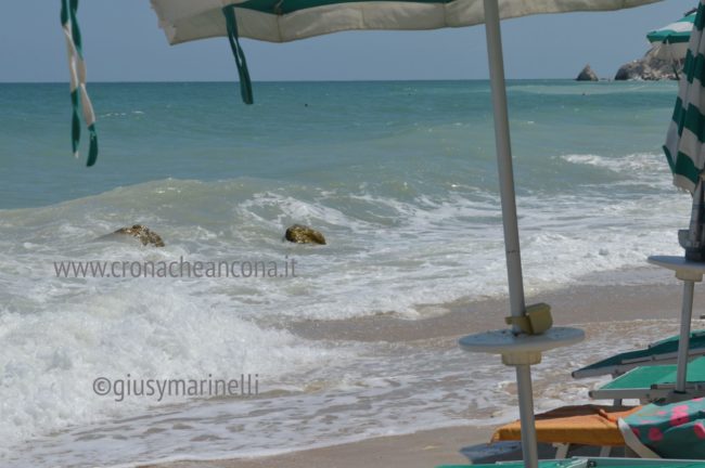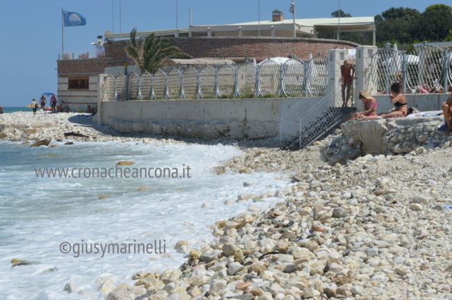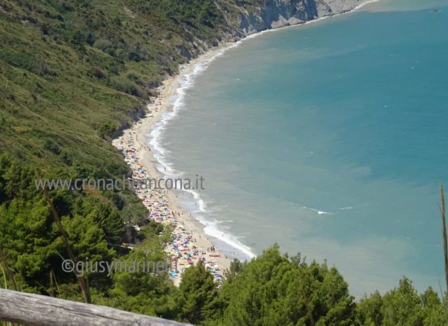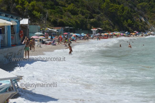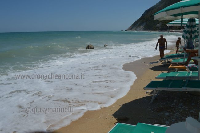 La spiaggia di Portonovo, come altre del litorale adriatico, continua a rimpiccolirsi a causa dei fenomeni erosivi.