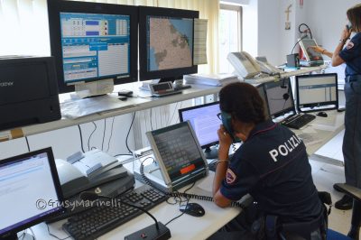 I poliziotti impegnati nella centrale operativa della questura di Ancona (Archivio)