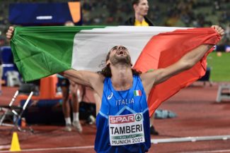 Con l’oro già al collo, Tamberi prova anche un salto a 2,32 e altri due balzi a 2,33 ma senza fortuna, dopo aver asciugato personalmente la pedana ancora umida, aiutato da Protsenko (che lo aveva battuto in Oregon per il bronzo), in una delle immagini-simbolo della serata. Poi, felicissimo, si sbraccia per salutare i tifosi, italiani (tanti) e non, stipati sulla curva di fronte alla pedana dell’alto, e corre a dedicare la propria gioia alla futura moglie Chiara, che si è dedicata anima e corpo al matrimonio del 1° settembre. È il quinto oro della sua carriera dopo i Giochi di Tokyo, il titolo mondiale indoor di Portland, il sigillo agli Europei di Amsterdam e la vittoria dell’Europeo indoor di Glasgow. Ed è il secondo oro della spedizione azzurra a Monaco di Baviera, con l’Italia che raggiunge il momentaneo quarto posto (2-1-3) nel medagliere grazie ai titoli di Marcell Jacobs e Gianmarco Tamberi. Sempre loro. Sempre l’oro.