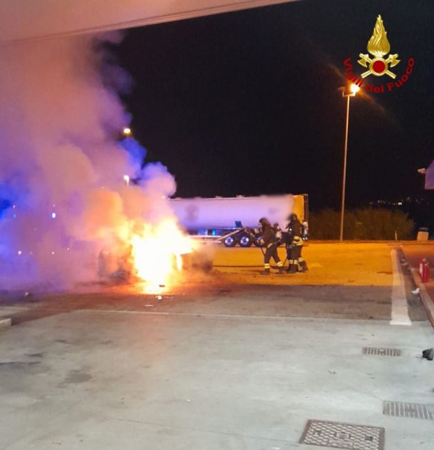 La squadra di Osimo, arrivata con un’autobotte, ha provveduto a spostare il mezzo lontano dai distributori di benzina e gasolio, per poi spegnere le fiamme e mettere in sicurezza l’area dell’intervento.