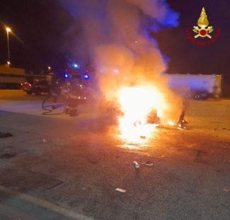 I pompieri sono accorsi intorno alle 23 nell’area di servizio tra Porto Recanati e Ancona Sud, a seguito dell’incendio di un’auto alimentata a gasolio.