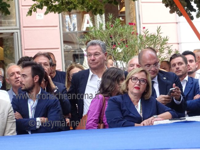 Il quadro interno: «A me piace parlare dei problemi di oggi, la grande sfida è liberare l’energia, non si devono sfruttare le aziende, i professionisti. Fanno di tutto per penalizzare chi produce, vogliono il Reddito di cittadinanza perché così mettono tutti in mano alla politica. Voglio combattere la povertà, il reddito di cittadinanza non è la soluzione, la gente deve essere libera, deve avere lo Stato alleato e non padrone. Lo Stato giusto non mette sullo stesso piano chi può lavorare e chi non può farlo, un giovane che può lavorare prende 700 euro, l’anziano prende pensioni sociali da 400 euro. La povertà non si cancella per decreto, il lavoro non si crea per decreto. Aiuterebbe un sistema di tassazione per le imprese legato alle assunzioni, bisogna incentivare le assunzioni, intelligente sarebbe abbassare il costo del lavoro. Il salario minimo è lo specchietto per allodole. Se si vogliono alzare i salari, bisogna abbattere la tassazione. Meno burocrazia, riconoscere il merito, velocizzare la giustizia, ora si pensa che il primo volano sia l’amicizia per lavorare, non devi conoscere nessuno nel Governo che dico io, devi dimostrare quello che sai fare. Ti do le stesse opportunità, borse di studio ai meritevoli, dobbiamo recuperare il rapporto tra la formazione e il lavoro». Il fronte del turismo e del Made in Italy: «Il mare è l’economia blu, siamo una piattaforma in mezzo al Mediterraneo e ci comportiamo come la Svizzera, come se il mare non lo avessimo. Partendo dal tema delle infrastrutture portuali per arrivare al turismo, alla nautica, ai balneari. La qualità del prodotto, l’Italia è il primo marchio nazionale riconosciuto nel mondo, terzo marchio in assoluto, difendere la qualità del nostro prodotto dalle nazioni interessate che cercano di penalizzare i nostri prodotti, abbiamo migliaia di giovani disoccupati ma le aziende continuano a cercare personale specializzati che non c’è, un problema di formazione culturale».
