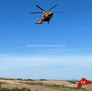 L’eliambulanza, giunta sul luogo, ha verricellato il personale che ha preso in carico il 73enne trasportandolo con un codice giallo al pronto soccorso del vicino ospedale di Jesi.