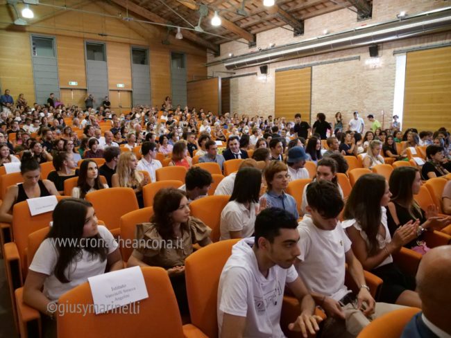 Applausi a scena aperta per i 140 studenti degli istituti superiori anconetani che hanno conseguito la votazione di 100/100 all’esame di maturità dello scorso luglio.