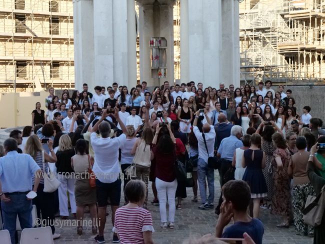 Nel tardo pomeriggio di oggi all’Auditorium della Mole Vanvitelliana molti di loro hanno ricevuto dalle mani del sindaco Valeria Mancinelli e dell’assessore alle Politiche Educative, Tiziana Borini una pergamena nominativa con i ringraziamenti della città per il massimo risultato conseguito. Non tutti erano presenti a ritirare l’attestato in omaggio all’impegno da loro profuso negli studi.«La Mejo Gioventù è nel volto sorridente di questi giovani studenti dei nostri istituti superiori che festeggiamo per il massimo dei voti raggiunto all’esame di maturità» ha commentato il sindaco Mancinelli. Alla cerimonia era presente anche il direttore dell’Ufficio scolastico regionale, Marco Ugo Filisetti che ha ricordato, numeri alla mano, come nelle Marche siano stati 533 i diplomati con 100 e lode e 1231 quelli che hanno ottenuto i 100/100. A guidare la classifica la provincia di Ancona con 180 maturi con 100 e lode e 352 diplomati con 100/100.