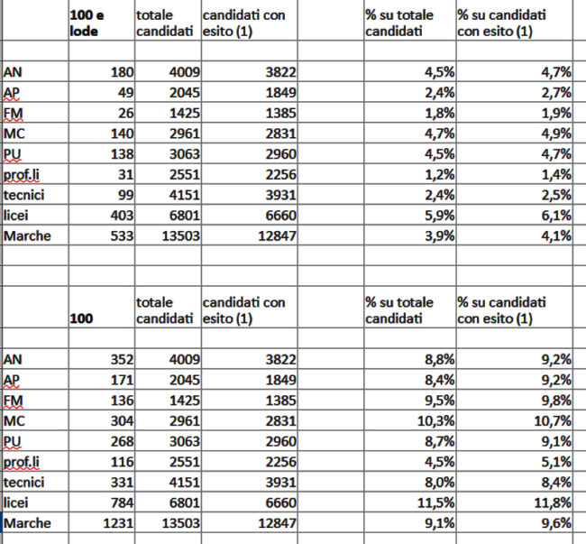 I DIPLOMATI CON IL MASSIMO DEI VOTI NELLE MARCHE a.s. 2021/2022 (dati Usr Marche)