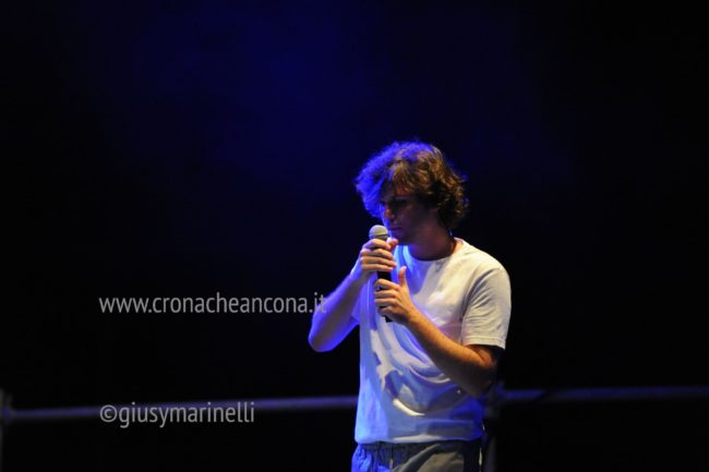 L’emozione della prima volta. Edoardo Spinsante, in arte Baltimora, si è preso stasera il palco della Mole nella sua Ancona, salutato da tanti fans a lui coetanei. Ha portato una scaletta ricca il vincitore della 15esima edizione di X Factor, astro nascente appena 21enne della musica italiana pop, nel luogo che ha ospitato artisti blasonati, anche internazionali. Baltimora ha aperto il concerto live, il primo nella sua città natale dopo l’avvio del tour a Senigallia, con un’intesa interpretazione di ‘Parole di Burro’ di Carmen Consoli e tra gli intramezzi di dialogo a cuore aperto con la platea giovane, ha regalato sensazioni e immagini evocative proponendo con passione i brani del suo Ep d’esordio “Marecittà” (sette tracce) dedicato propria ad Ancona.
