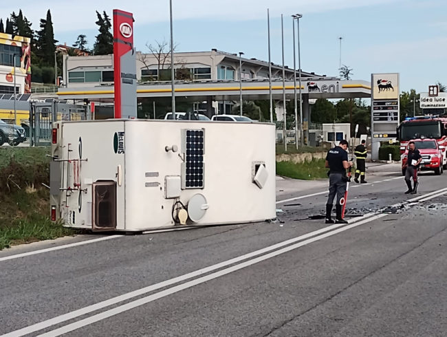Anche il conducente del caravan, un 70nne che viaggiava sul mezzo con la moglie, è stato estratto dai pompieri e consegnato alle cure dei militi della Croce Rossa di Ancona che sempre in codice di massima gravità ma in ambulanza lo hanno trasferito all’ospedale regionale. Sul posto, oltre ai mezzi sanitari del 118, l’ambulanza della Cri di Ancona e quella della Croce Gialla di Cameramo, sono intervenuti i vigili del fuoco del distaccamento di Ancona che hanno anche messo in sicurezza i mezzi, e le pattuglie della Polizia Stradale di Senigallia. Secondo una prima ricostruzione della dinamica dell’incidente ancora al vaglio, la vettura, sbandando, avrebbe invaso la corsia di marcia dove stava sopraggiungendo il camper che non riuscendo a schivarla, sterzando all’improvviso si sarebbe ribaltato.