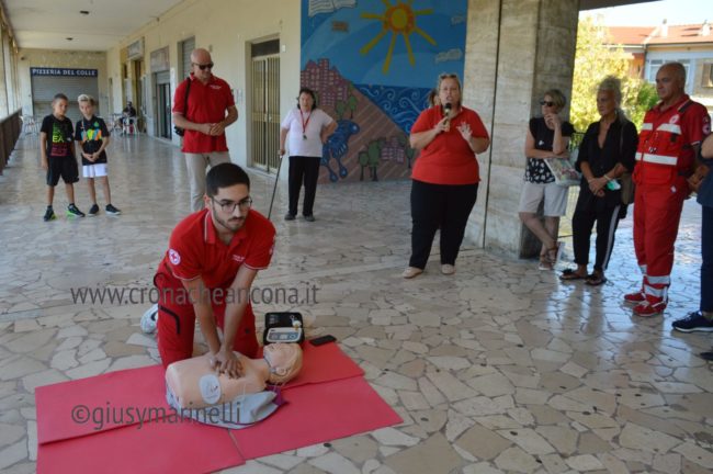 Si tratta di un altro passo in avanti del progetto ‘Cuore Ancona città cardio protetta’ che dovrebbe presto svilupparsi con l’installazione di altre 12 postazioni salva vita. Anche quella di Collemarino è collegata con la centrale operativa del Nue 112 ed è monitorata con telecamera. «Vogliamo mettere tantissimi punti con defibrillatori in città per salvare più vite possibili. E’ un progetto a cui teniamo molto» ha spiegato l’assessore ai Servizi sociali Emma Capogrossi che ha ringraziato i volontari della Cri. L’associazione organizza periodicamente corsi di primo soccorso gratuiti aperti a tutti, «corsi che vanno sempre sold out a dimostrazione che ad Ancona c’è questa sensibilità. Ma in caso di emergenza – ha tenuto a precisare l’assessore – anche chi non ha fatto il corso potrà utilizzare questo defibrillatore tarato anche per il soccorso in età pediatrica».