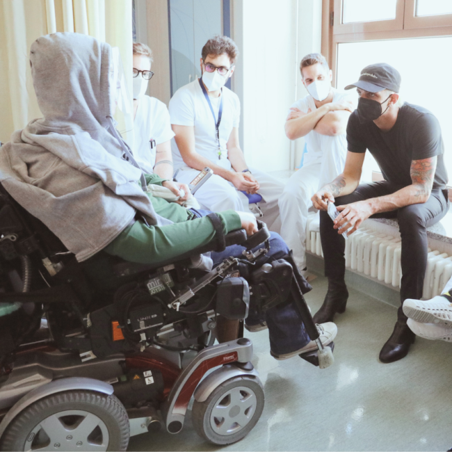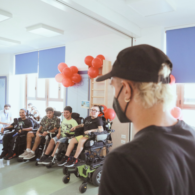 La visita dell’artista in questo caso è legata alla storia di amicizia con Francesco Venturi, un giovane paziente di Serra San Quirico, che convive con la distrofia di Duchenne e che da grande vuole diventare un poeta. Achille Lauro ha scritto post e prefazione del suo primo libro di poesie e coincidenze straordinarie, ieri si celebrava proprio la giornata mondiale sulla distrofia di Duchenne «che noi abbiamo celebrato insieme. – fanno sapere dal Centro NeMO – Quello che ci ha colpito è stato il suo desiderio di incontrare, conoscere, ascoltare e stare con i pazienti. Ha fatto a tutti loro un dono grande».