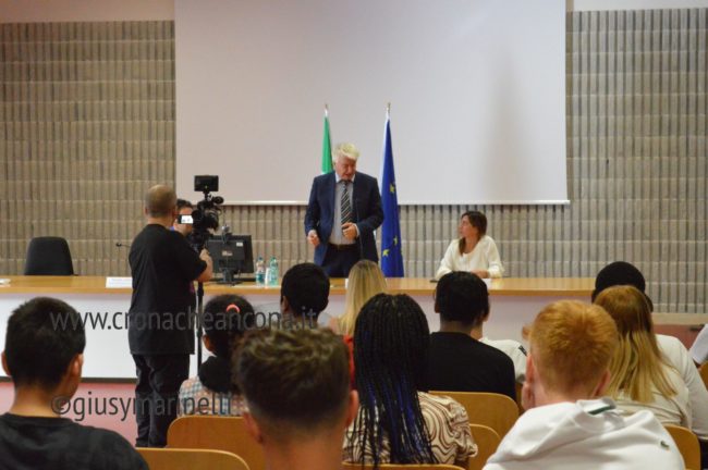«La scuola deve servire ad integrare -ha esordito il consigliere regionale di Fdi Carlo Ciccioli intervenuto in rappresentanza del presidente della giunta regionale Francesco Acquaroli- chi viene da condizioni economiche svantaggiate, chi ha disabilità e chi venendo da altri paesi deve ambientarsi. L’amicizia e l’apprendimento sono le basi per fare ciò attraverso il sistema delle relazioni». Ciccioli ha poi posto il punto sull’associazionismo «Ricordatevi l’importanza di stare in qualche squadra sportiva, in qualche associazione di volontariato. Il fare qualcosa per gli altri. Io ho iniziato come rappresentante di istituto e poi ho ricoperto decine di incarichi politici». E ancora: «La scuola è un cardine fondamentale della società anche perché guida la trasformazione dell’individuo da ragazzo ad adulto».