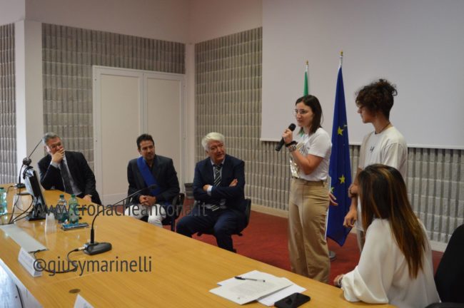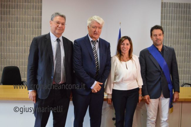 da sin. il presiente della Provincia, Daniele Carnevali, il dg dell’Ufficio Scolastico Regionale Marche, Marco Ugo Filisetti e la preside Saula Rosati