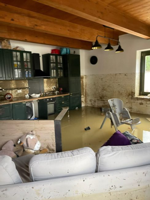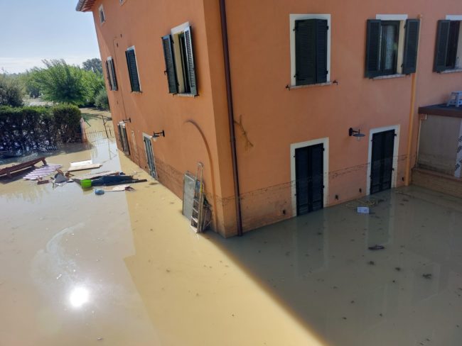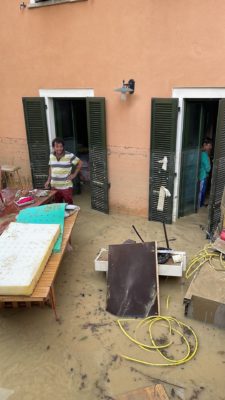 borsa dei pannolini perché non c’era tempo per fare altro. Siamo andati quindi dai vicini – continua – e avevamo tantissima paura. Noi siamo stati anche fortunati perché nella parte della palazzina dove viviamo noi, che è di tre piani, i vicini erano in casa. L’acqua saliva così velocemente che avevamo il terrore potesse coprire l’intero stabile. A fianco, invece – continua -, ci sono altre famiglie con altri bambini, di cui una di 9 mesi, e non hanno avuto la possibilità di andare al secondo piano perché i vicini non c’erano e hanno quindi trovato le loro porte sbarrate. Hanno anche tentato di aprirle a pugni ma, essendo porte blindate, si sono solo fatti male alle mani nel tentativo di sfondarle per mettersi in salvo. Erano in 8 in un pianerottolo, e mancavano 3 gradini perché l’acqua arrivasse a loro, tanto che erano pronti a gettarsi e cercare di raggiungere qualche posto per mettersi in salvo con la bimba di 9 mesi e il bimbo di 5 anni, mentre l’altra famiglia ha bimbi di 2 anni e una di 10. Per fortuna però l’acqua si è poi fermata, non salendo a coprire tutto il pianerottolo. Loro sono traumatizzati e sono anche le persone da aiutare di più perché non sono originarie di Senigallia: trasferiti qui da pochi anni, non hanno tanti amici e soprattutto non hanno parenti vicino».