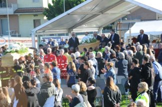 Le bare, intorno alle 17, sono state poi accompagnate sulle note di Hallelujah di Jeff Buckley, portate in spalla dagli uomini della Protezione Civile, tra le lacrime e gli abbracci delle centinaia persone presenti.