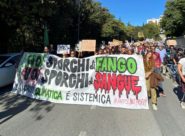 ANCONA – La melma è stata gettata simbolicamente sulle scale e sui muri di Palazzo Raffaello da diverse centinaia di giovani di Fridays for Future. Protesta anche al Provveditorato, affinché le scuole vengano riaperte e non si torni in Dad. Un minuto di silenzio in piazzale Libertà per le 11 vittime a seguito dello straripamento dei fiumi Misa a Senigallia e Nevola. La manifestazione si è conclusa al Piano