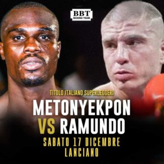 La Federazione Pugilistica Italiana ha reso noto il nome del nuovo sfidante alla cintura italiana dei pesi superleggeri attualmente detenuta dal campione italiano Charly Metonyekpon (11.0.0), si tratta di Stefano Ramundo, (10.0.0.), pugile abruzzese ancora imbattuto. L’organizzazione dell’evento è stata accaparrata dalla Buccioni Boxing Team il cui promoter Davide Buccioni ha reso noto che il match si terrà il prossimo 17 dicembre a Lanciano in Abruzzo.