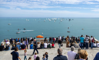 Gli sguardi degli anconetani rivolti verso il mare, ad accompagnare le 139 imbarcazioni iscritte alle 23esima Regata del Conero nel loro percorso dal Passetto a Portonovo e ritorno.